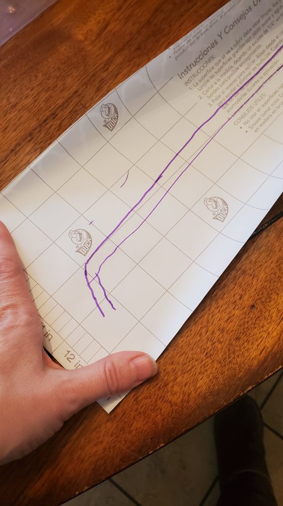 - Trace your drawer handle onto the back of the contact paper, and then put a second line a bit further away to give yourself an edge to press over. Cut out your new line.
