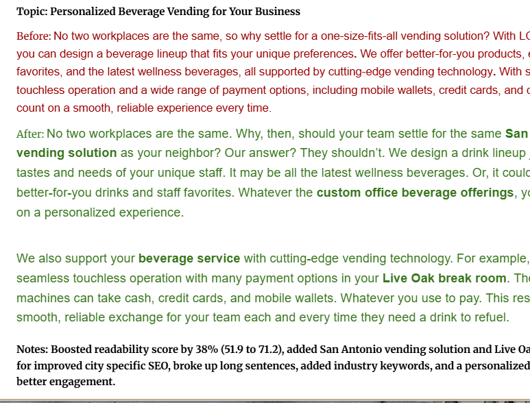 Transform AI-generated blogs into high-quality, reader-friendly blogs by improving clarity, flow, and structure. Optimize for SEO with targeted keywords and city-specific details, ensuring content is engaging, brand-aligned, and search-engine ready.